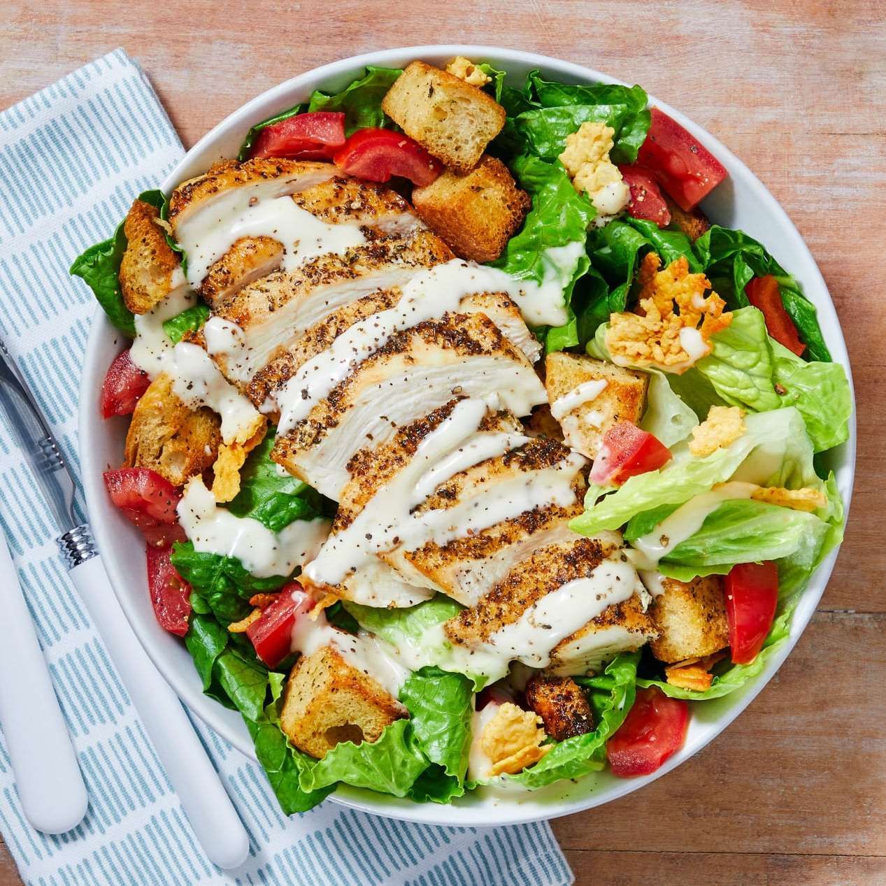 (Add fried or grilled chicken… $2.75) Romaine lettuce, croutons topped with freshly grated parmi giana cheese